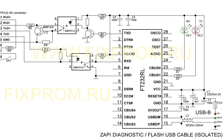 8057726 is the interface Zapi RS232-serial for Clark GEX/GTX and PX models. For forklifts with 80-volt Zapi controllers, we use a cable of our own design, which provides full galvanic isolation. Here is its electrical circuit: